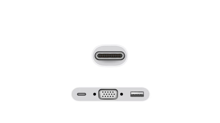 The USB-C VGA Multiport Adapter lets you connect your USB-C or Thunderbolt 3 (USB-C) enabled Mac, iPad, or iPhone to a VGA display, while also connecting a standard USB device and a USB-C charging cable.